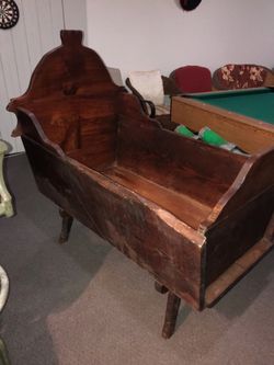 Hand carved solid wood antique cradle with mattress and bedding$229Hagerstown, MD