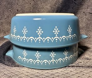 Vintage Pyrex Snowflake Blue Cinderella Casseroles - Set of 2 $60San Diego, CA