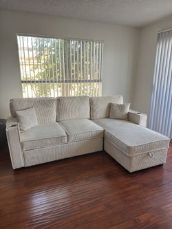 Modern Cream Corduroy Sectional Sofa with Pull-Out Bed & Cup Holders$150Los Angeles, CA