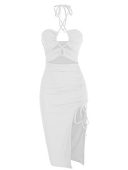 Sexy Halter Deep V Neck Maxi Dress Sleeveless Backless Split Long Dress Black S$27Garland, TX