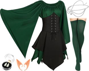 3PC Women Elf Renaissance Medieval Dress Traditional Irish Fairy Viking Costume Elf Ear For Halloween Cosplay Party(Small,Green, Black)$25Garland, TX
