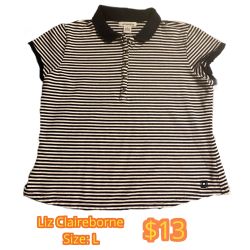 Liz Clairborne - Size L “Women” White & Blue Stripe Top$13Fort Myers, FL