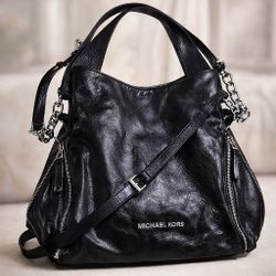 Michael Kors Black Glazed Leather Trapeze Hobo Crossbody Bag Silver Chain$90San Antonio, TX