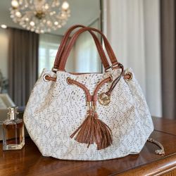 Michael Kors Large Vanilla Acorn Signature Drawstring Tassel Tote + COA$120San Antonio, TX