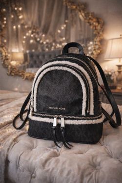 Michael Kors Rhea Black Shearling Trim Mini Backpack Silver Hardware$80San Antonio, TX