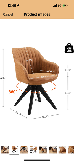 Office Chair No Wheels, Mid Century Modern Desk Chair, Swivel Accent Chair with Oak Wood Legs, Faux Leather Upholstered Armchair for Desk, Brown$50Riverside, CA