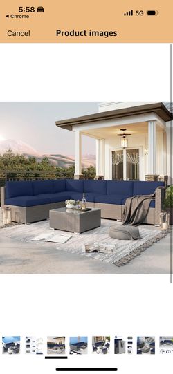 Outdoor Patio Furniture Set 7 Piece Outdoor Sectional Sofa Grey Wicker Conversation Sofa Set with Coffee Table and Cushions,Dark Blue$300Rialto, CA