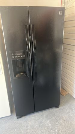 Refrigerator 33” Side by Side black with water and ice dispenser in the door working perfect Excellent condition with warranty delivery available $450Aloma, FL
