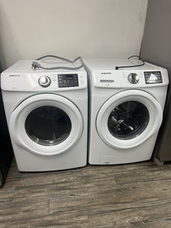 Front-loading washer and dryer set Samsung white Electric Good condition working perfect with wart delivery available $600Aloma, FL