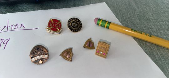 GENERAL MOTORS, UNITED AUTO WORKERS RETIREMENT PINS FIRE DEPARTMENT PIN GOLD FILLED MAYBE RUBY DIAMOND CHIP$50Freehold, NJ