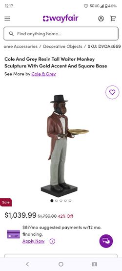 Life-sized Cole & Grey Resin Monkey Butler Sculpture $500Maple Heights, OH