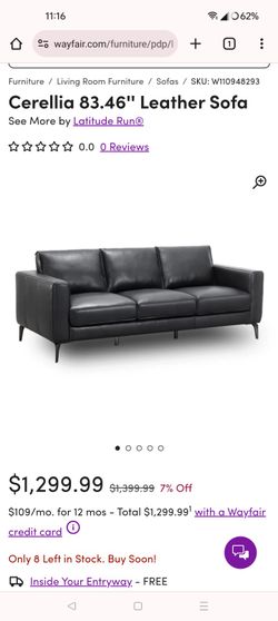 Cerellia 83.46'' Leather Sofa$600Cleveland, OH