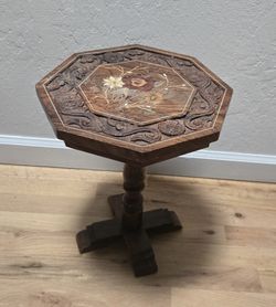 Antique Carved Wood Side Table Floral Marquetry Inlay Design 15"$300Scottsdale, AZ