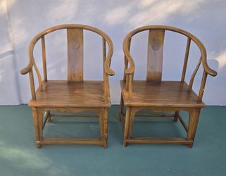 Lot (2) Vintage Chinese Horseshoe Elmwood Chairs with Carved Markings$500Scottsdale, AZ