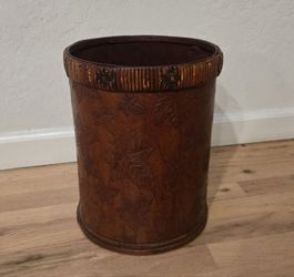 Vintage Floral Etched Wood Rattan Waste Paper Basket 12"$20Scottsdale, AZ