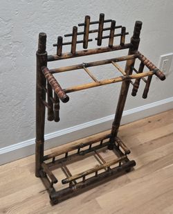 Vintage Asian Torched Bamboo Umbrella Walking Stick Stand 28"$100Scottsdale, AZ