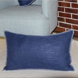 2 Pack Pillow Covers 14" x 24" Navy Blue & Cream Trim Stitching NEW$10Statesville, NC