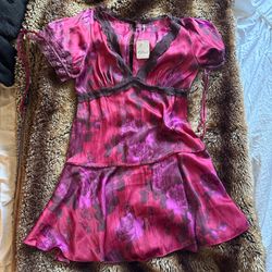 Free people dark pink and purple silk mini dress with lace trim$50Los Angeles, CA