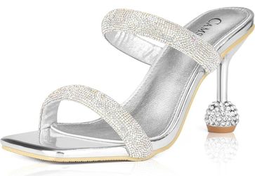 CAMSSOO Women's Elegant Silver Rhinestone Heeled Slippers for Special Occasions | Buy Here Or From eBay | Sells For $45 In Amazon$27Grand Prairie, TX