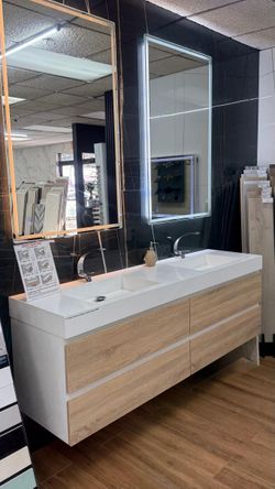 60" Double Sink Floating Natural Wood Color Bathroom Vanity$1,399Miami, FL