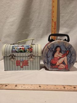 VTG Tin boxes, 1 dome GI Joe mini lunch box & 1 Bettie Page Tin purse/ lunch box$52Carnation, WA