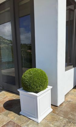 White Outdoor Planter + Artificial Topiary Ball$200Malibu, CA