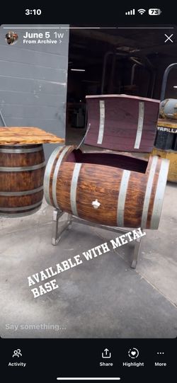 Available For Sale Ice Chest Barrel $280 White Metal Base $280South Gate, CA