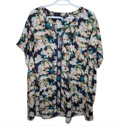 Simply Vera Vera Wang 3X Plus Size Button Down Short Sleeve Floral Print Blouse$36Long Creek, IL