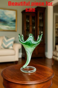 Vintage Handmade Green And White Murano Style Glass Vase$29Methuen, MA