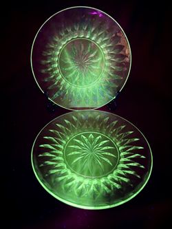 Two Beautiful, Clear, Salad Plates (UV Reactive) Vintage $10Methuen, MA