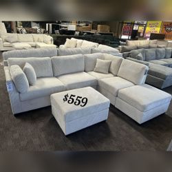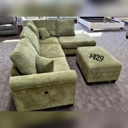Sage corduroy sectional sofa with ottoman $429Anaheim, CA