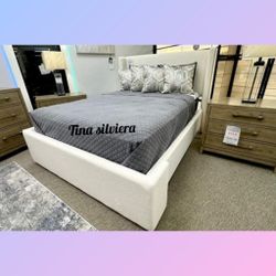 white boucle fabric Queen platform bed frame $399Riverside, CA