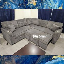 Dark Gray sectional sofa with pullout bed with cup holders $569Riverside, CA