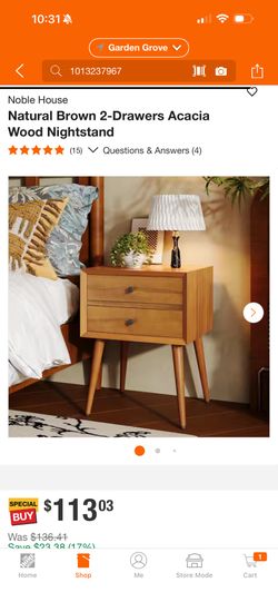 Noble House Natural Brown 2-Drawers Acacia Wood Nightstand$60Garden Grove, CA