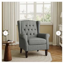 Uixe Modern Gray Linen Upholstered Button High Back Accent Arm Chair with Wood Legs (Set of 1)$95Garden Grove, CA