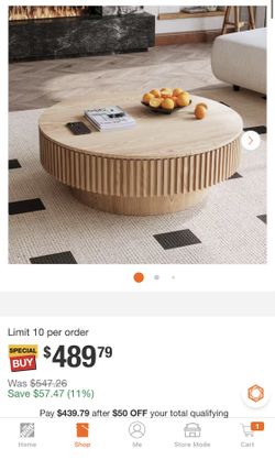 Noble House Leigh 39.37 in. Brown Round MDF Wood Coffee Table with Storage, Fluted Design, Natural$250Garden Grove, CA