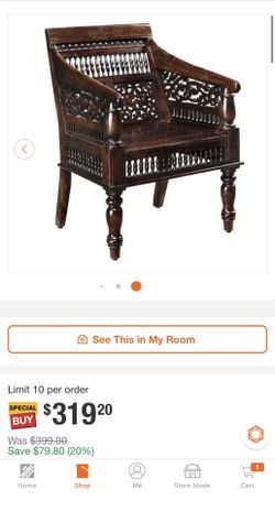 Home Decorators Collection Maharaja Walnut Brown Wood Hand-Carved Arm Chair$200Garden Grove, CA