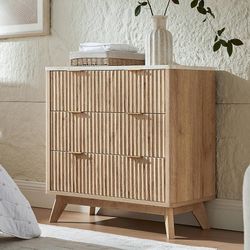 Fluted 3 Drawer Dresser, 32" Tall Modern Chest of Drawers with Faux Marble Top$110Ontario, CA