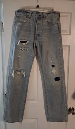 LEVI'S 501 Button Fly Patch 150th Anniversary Distressed Jeans Mens 33x34$40Leland, NC