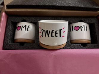 New Set of 3 Ceramic Succulent Planter Pots - Home Sweet Home - Bamboo Trays$15Pasadena, CA