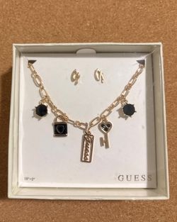 New Guess Gold-Tone Charm Necklace & Earrings Set - Lock & Key - Black Accents - Gift Box$15Pasadena, CA