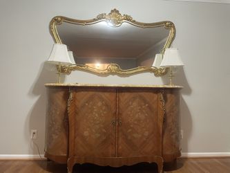 Marble Top Antique Batesville French Provincial Louis XV Carpathian Elm Sideboard Buffet 65"$100Greensboro, NC
