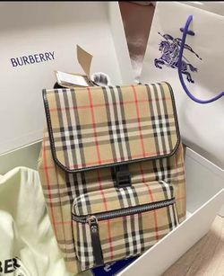 Burbery Vintage Checkered Leather Backpack Unisex Couples' Edition Classic Beige$380New York, NY