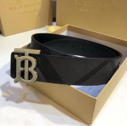 Burbery Letter Smooth Buckle Leather Belt for Men Charcoal Gray/Graphite 3.5 cm wide$135New York, NY