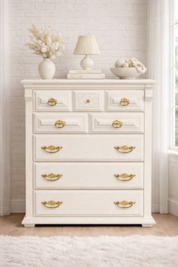 Antique Lace Cream Dresser with Gold Accents$250Vista, CA