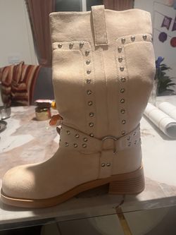 Richealnana Women's Motorcycle Boots Studded Faux Suede Biker Riding Chunky Heel Round Toe Moto Boots$30Bakersfield, CA