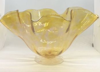 Vintage Iridescent Yellow Art Glass Ruffled Bowl Pedestal Centerpiece$30Seattle, WA