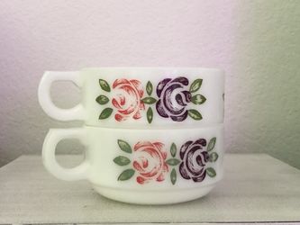 Vintage Milk Glass Rose Mugs – Set of 2$12Seattle, WA