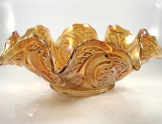 Vintage Marigold Carnival Glass Ruffled Bowl – Iridescent Depression Era Fruit / Centerpiece Dish$45Seattle, WA
