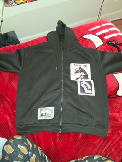 Mostly Black Hoodie With Writing On The Sleeves $10Chicago, IL